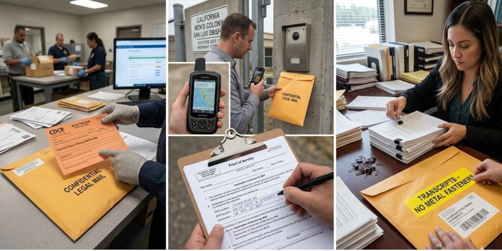 California prison legal document delivery is a process with specific rules that carry real consequences when they are not followed. CDCR addressing requirements, delivery timelines, transcript handling rules, and mail inspection protocols each represent a point where a delivery can succeed or fail.